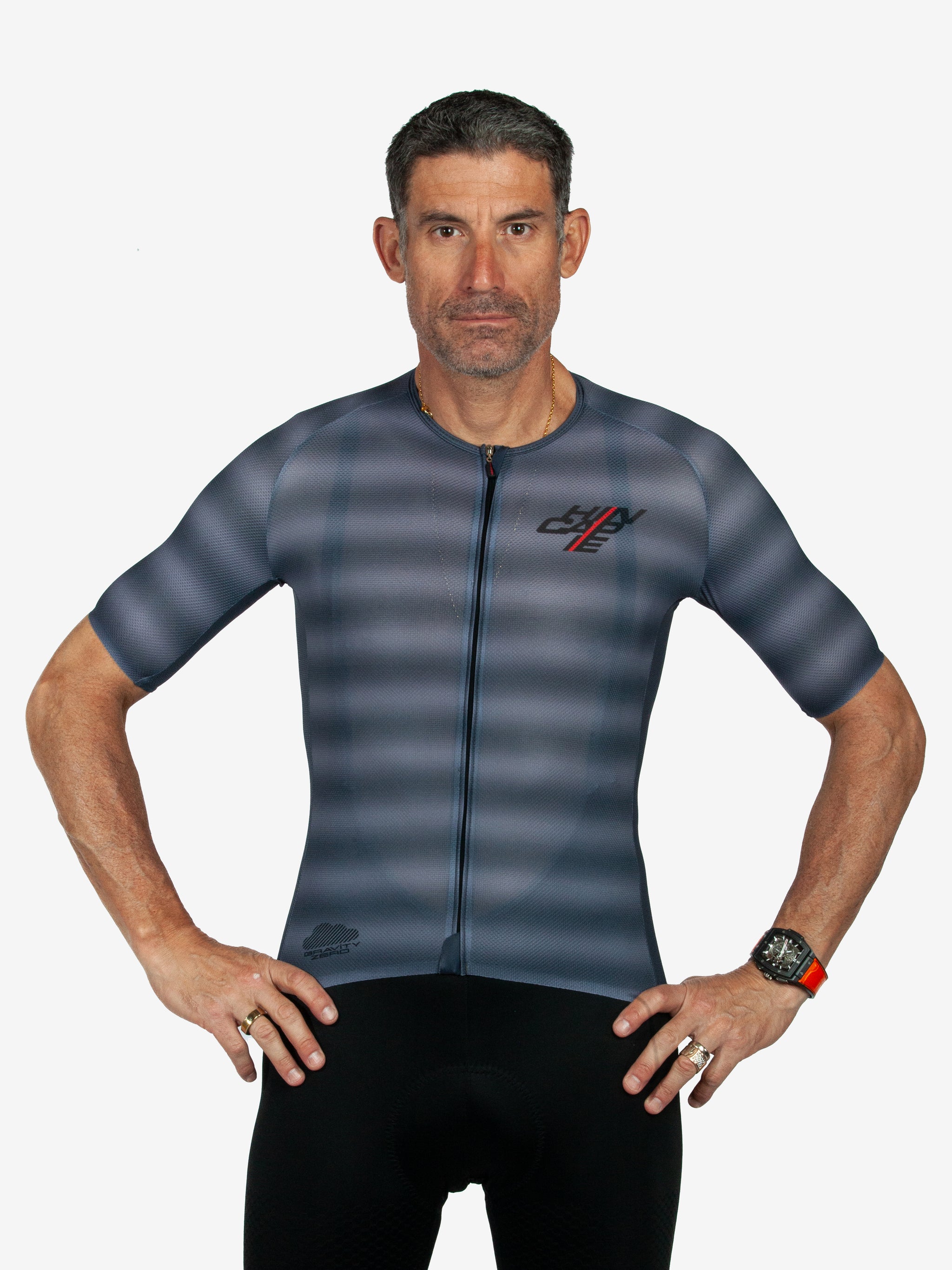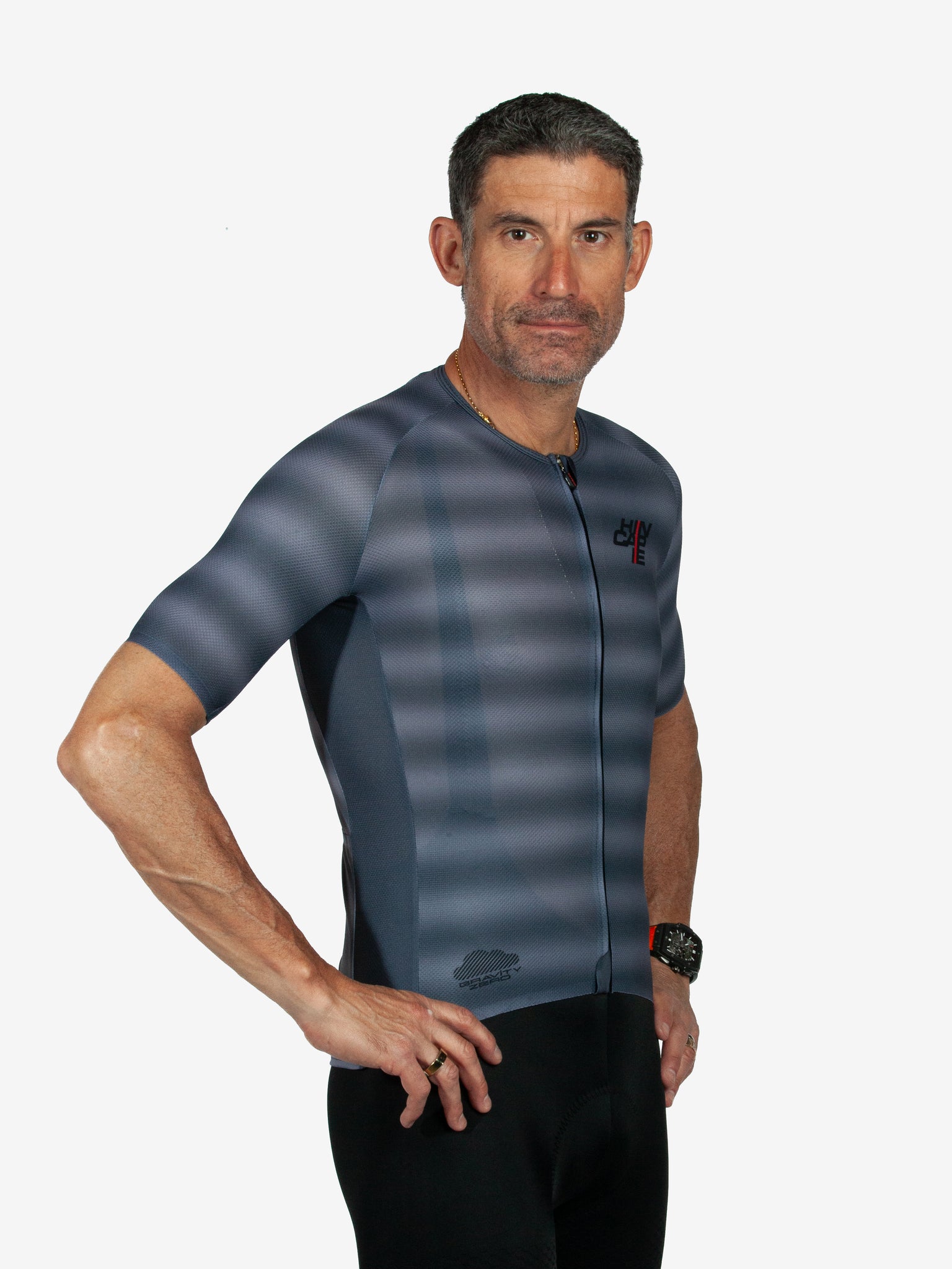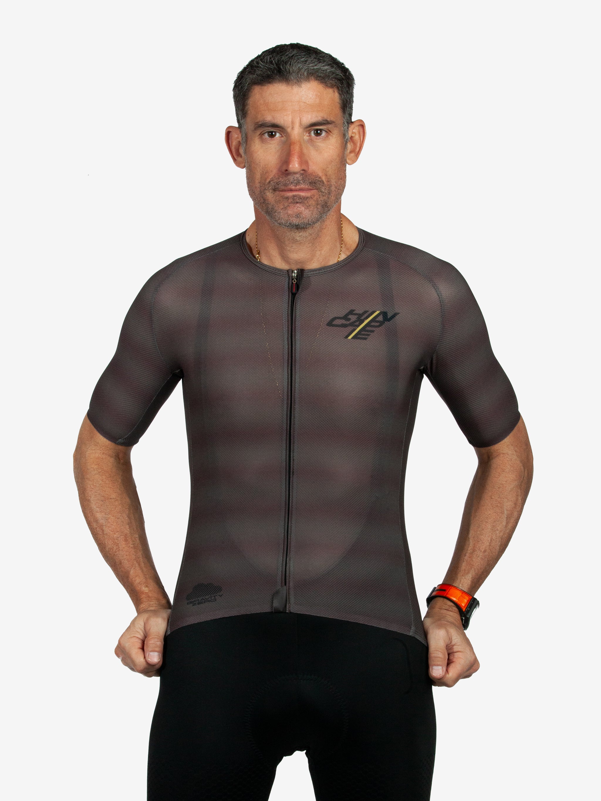 Stay comfortable and free as you ride with our Gravity Zero Short Sleeve Jersey. Constructed with lightweight mesh fabrics, this sleek pro fit jersey has an open neckline for better ventilation and a longer sleeve length for extra sun protection - so you can stay cool and focused on the road. George is 6'3", 180 lbs and is wearing size Medium.